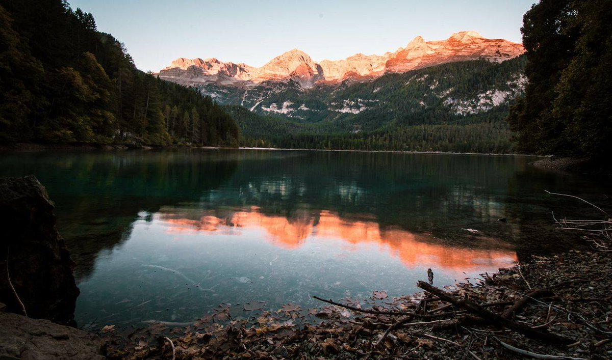 È circondato da fitti boschi e dalle imponenti cime delle Dolomiti di Brenta.