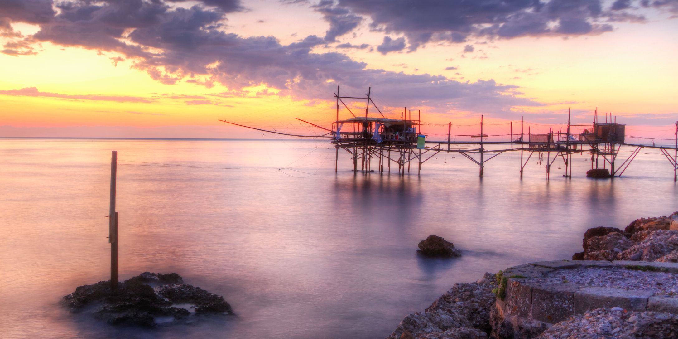 La Costa dei Trabocchi è uno stupendo tratto di litorale abruzzese che ospita magnifici trabocchi, ovvero speciali palafitte in legno un tempo usate per la pesca.